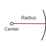La distancia fija desde el centro a cada punto del conjunto se llama radio. A continuación se muestra una representación gráfica de esta definición.