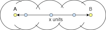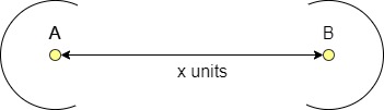 Sea A un punto y B un conjunto de objetos. Si A está a distancias iguales de B, se dice que A es equidistante de B.