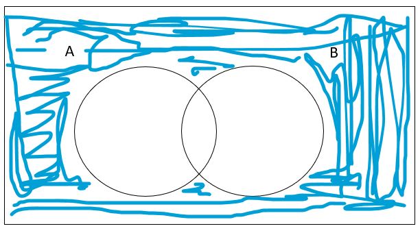 Paso 3: Como esto está en una intersección, ahora sabemos que A'∩B está representado por las regiones donde hay ambos colores, como se muestra a continuación.