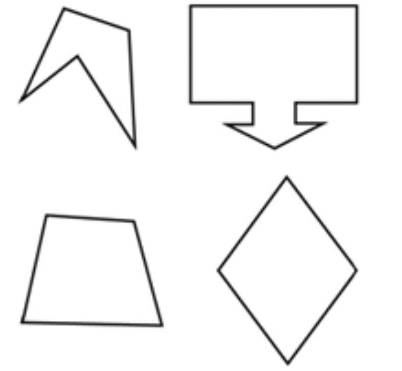 - Un polígono cóncavo es aquel en el que al menos un vértice apunta hacia dentro