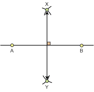 Paso 3: Repite el Paso 2, esta vez tomando B como centro. Marca los puntos de intersección como X e Y. Aquí, AX = BX y AY = BY.
