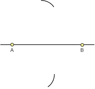 Paso 2: Abre el compás a más de la mitad del segmento de recta AB. Tomando A como centro, traza arcos por encima y por debajo del segmento de recta.