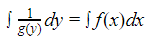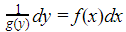 La forma de una ecuación diferencial separable (para las variables y y x, donde y es una función de x) es  . Podemos reordenarla para obtener