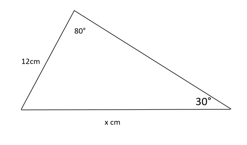 R: Usando la regla del seno, sabemos que y podemos reordenar x para obtener lo que da x = 23,6 (3 sf).