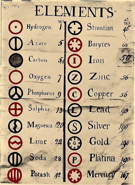 Figura 13: Tabla de elementos de Dalton publicada en A New System of Chemical Philosphy.